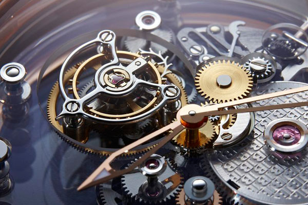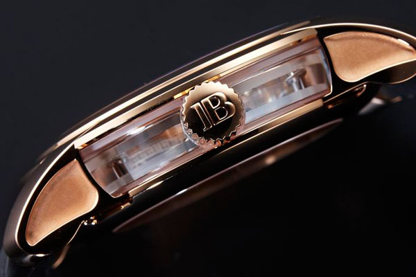 本款卡羅素腕錶,屬於L-Evolution系列,但是與這系列錶款最大的不同在於,錶殼側面採用的藍寶石水晶材質製作;結合藍寶石水晶製作的機板與夾板,讓卡羅素裝置宛如漂浮在空中,而每一個齒輪也能清楚的映入眼簾。使用藍寶石水晶材質取代傳統的黃銅來做為機芯材質,最大的困難之處在於鑽孔與切割的過程,因為材質易碎的特性,在每一個製作的過程中,製錶師都要小心翼翼的處理,難度絕對高於以往。另外機芯上層僅有一片夾板,在組裝的過程中,難度更是提高數倍,如果讀者有親自組裝過3/4夾板的經驗,就知道難度與傳統分散式夾板的確有所不同,更何況本只腕錶的擒縱裝置,也是共用同一個夾板。所以這只腕錶在每一個製作與組裝的過程中,都是一場場艱難的挑戰。