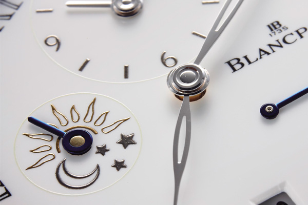 燒製的搪瓷面盤非常細膩典雅,配置上也算頗清晰,12點鐘方位是出發地時間顯示,中央指針則是可以半時區調整的所在地時間,九點鐘位置則是雕琢細膩的日夜指示。無論是半時區的調整概念、快調機制、八日鍊甚至鈦金屬擺輪,寶鉑為這款腕錶所加諸的改革都是建構在實用層面上,這種洗盡鉛華,回歸實質創意小品,其實頗為雋永。