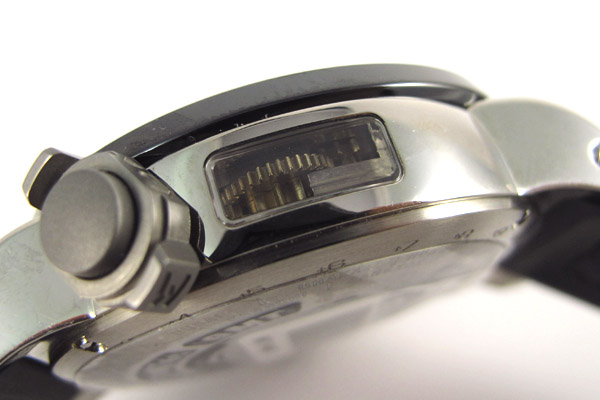 10點鐘位置的按鈕這是寶齊萊的專利設計,運用單一按鈕便能將地三地時區顯示往前或往後,以小時為單位快調。只要先設定好E(East)或是W(West),按壓即可快調,第三時地時間錶圈便會以順時針或逆時針方向移動。在設定上相當的方便。若是不知道哪邊往E那邊往W,面盤上則有標示,照著調即可。
