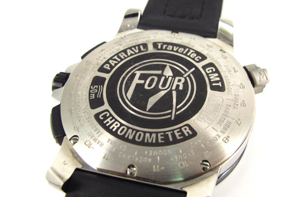 嚴守錶款設計的強悍金屬氣味,TravelTec FourX並未使用透明底蓋,實心底蓋的圖案有點美式圖騰風味,讓整體設計頭尾都悍。