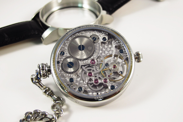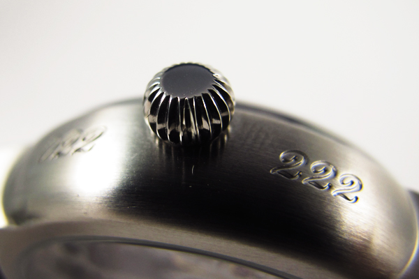 而三點鐘位置錶冠頂端的小環則是當變身成懷錶時,供錶鍊掛勾使用。小環配合洋蔥錶冠的組合,視覺效果也頗為古典。