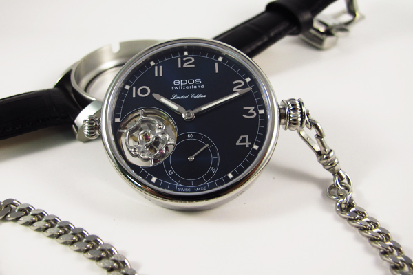 變化三型態除了腕錶與懷錶外,另一種是可以讓底蓋朝上。雖然少了腕錶閱時的功能,但卻讓機芯成為主角,讓腕錶搖身成為手腕上的裝飾。因此,免不了要經過一番精雕細琢,讓機芯所呈現出的視覺效果更為細膩。epos在夾板上加上幾何的藤蔓紋,機板上採用魚鱗紋處理,視覺上複雜的層次感溢於言表。