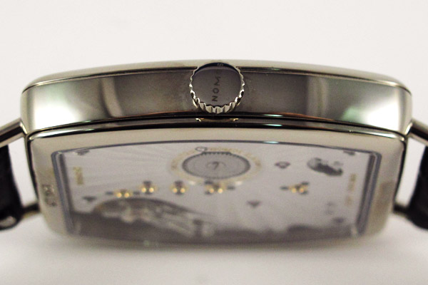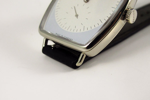 纖細甚至帶點可愛的錶耳,帶著古典的文藝氣息。印象中這樣的構圖在品牌錶款設計中並不常見,Tangente系列的錶耳是角度分明的設計、Tetra則有著層次感、Orion則是由大而小的三角強悍設計。這款Lux細膩圓潤的錶耳,似乎也正呼應了酒桶錶身的暖調形象。