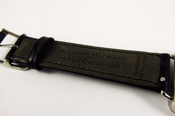與其他NOMOS錶款相同,錶帶所使用的,是美國芝加哥霍爾文皮革公司以馬臀皮所製作名為柯爾多瓦皮的頂級錶帶。除了質感特殊外,據說也比一般所用的鱷魚皮、牛皮、鯊魚皮錶帶更經久耐用。