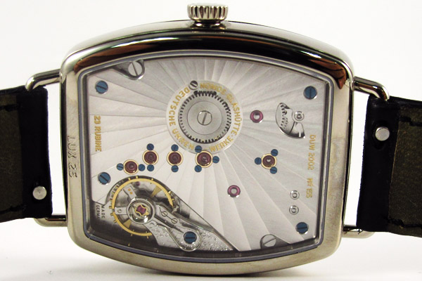 直徑40.5mm×36mm 18K白金錶殼╱時間指示╱DUW 2002手上鍊機芯,84小時動力儲存╱藍寶石水晶鏡面,透明底蓋╱防水30米╱參考價NTD 638,000
