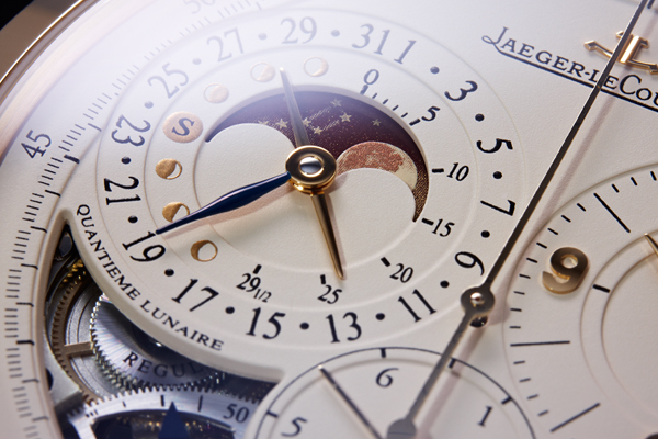 積家2010年推出的Duomètre à Quantième Lunaire月相日曆腕錶,是具有優雅古典風格的月相日曆腕錶,錶款增添了月相與日期指示功能,因此減少原有的計時結構,但是錶款上仍保留1/6閃電跳秒指針,以及雙發條盒設計。