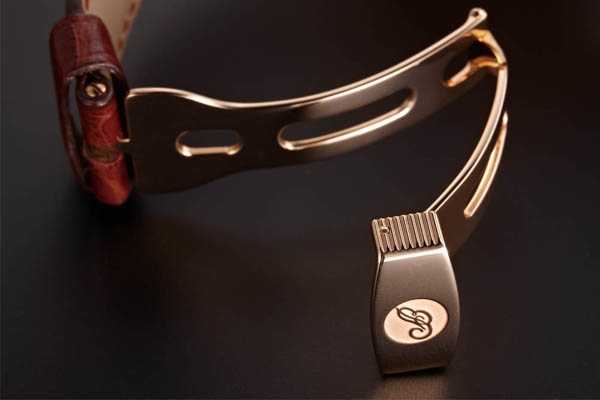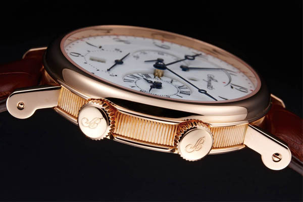 寶璣偏好的錢幣紋及響鈴錶常見的雙錶冠,它的錶耳栓特別與眾不同,從錶耳底面以螺絲鎖固。