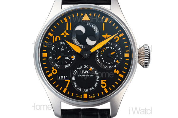 有鑑於這款特殊限量錶如此受到歡迎,所以萬國錶特別在2010年底,推出限量250只的大型飛行員萬年曆限量腕錶。這款腕錶最大的特色就是採用橘色做為指針與時標的顏色,連同錶帶上的縫線也是使用同色系,這樣的設計不僅醒目且深具活力,展現出大型飛行員腕錶與眾不同的風貌。而使用黑色鱷魚皮製作的錶帶,上面也特別加入鉚釘元素,增添濃厚的軍錶風格;質感紮實的不鏽鋼單摺疊扣,可讓使用者的配戴更為方便。
