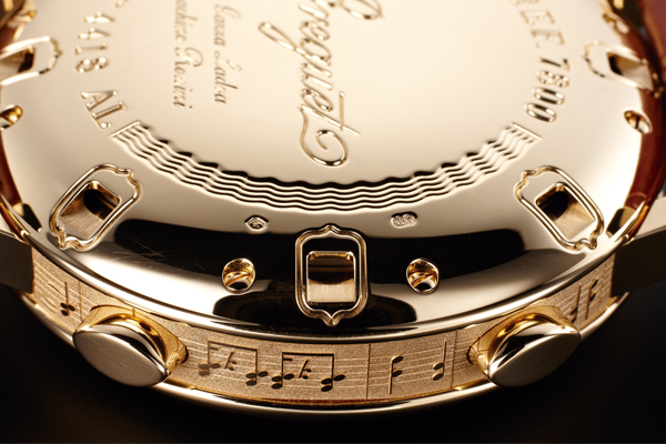 寶璣堅守著瑞士頂級製錶的法統,自1775年以降,Abraham Louis Braguet這位不世出的製錶天才就成為各個世代製錶師追尋仿傚的對象。在這款錶上有著師法古老製錶智慧的盤式發音結構,金屬盤上打著梢釘,撥動長短不同的音梳發出聲音,它改良自傳統採用梢釘音筒撥動音簧的結構,後者正是俗稱「八音盒」的傳統音樂盒裡最常見到的構造。
