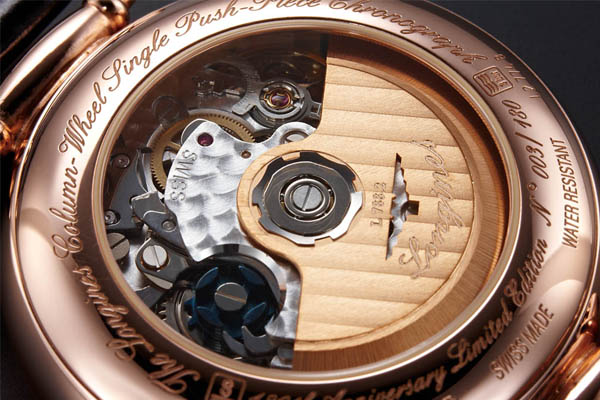 心臟也完全不同,原始錶款採用開創計時手錶紀元的傳奇機芯13.33Z,它是手上鍊、導柱輪結構,大多為銅鍍金機板,少數採鍍鎳機板,分為三種版本,有錶冠調整型、隱藏式按鈕調整型及附飛返功能的後期款;180週年紀念錶款則採用L788自動上鍊導柱輪機芯,此機芯為浪琴獨家專用,按把與錶冠同軸,能大幅減少控制連桿,機械結構更為精煉。