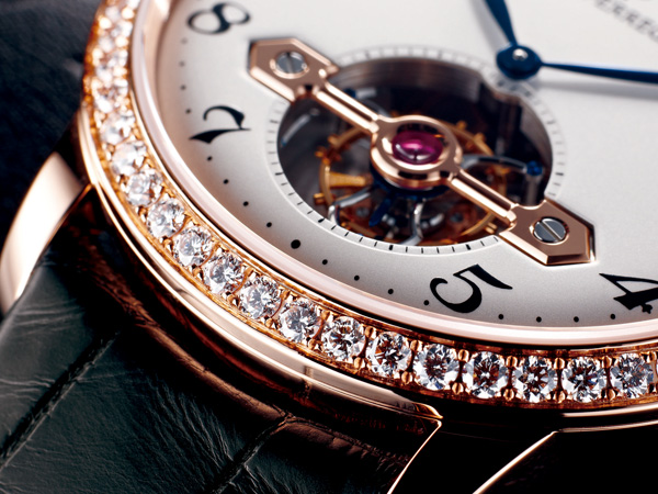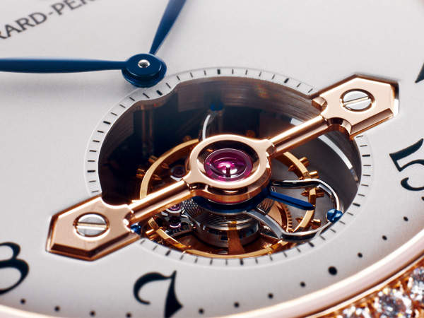 直徑40mm 18K玫瑰金錶殼,錶圈鑲鑽/時間指示/GP 9610自動上鍊機芯,陀飛輪裝置,儲能48小時/藍寶石水晶鏡面/鱷魚皮錶帶搭配折疊扣/防水30米/全球限量18只/參考價NTD 6,260,000(實際價格以官方公告為準)