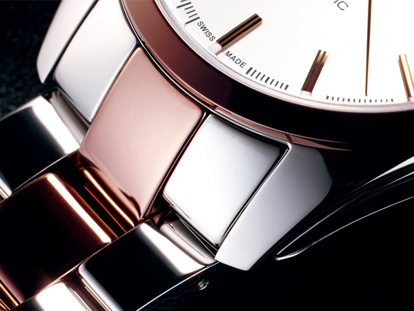 硬度同樣維持在與高科技陶瓷差不多的1900維氏硬度上下,但成色上跳脫以往陶瓷材質非黑即白,散著時尚光芒的既定印象,而是鍛鍊出白金色的光芒。工序雖然繁雜,但硬度比金更高,不易產生刮痕,多年之後仍能保持嶄新。到了這款皓星,雷達技術更精進,推出玫瑰金色澤的Ceramos,全新的色澤讓因此雷達能夠運用的招式也更多了一招。