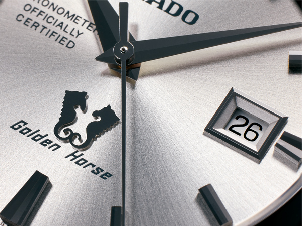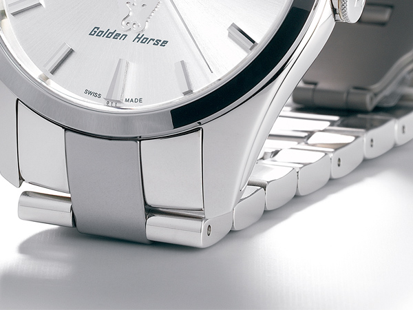 Golden Horse限量腕錶和Horse原始款相比直徑從37mm擴大至40mm,都採用柱形時標,而時標採多角度切割,任何角度下都能折射出光芒。還有原本六點鐘位置的綠色海馬標誌,現在也變為充滿科技感的銀色系,錶殼外型延續著皓星系列,由三塊寬板鍊帶組成,從錶側感受到藉由新技術製程下打造出的流線造型,時尚設計再搭載穩定的ETA2824-2自動上鍊機芯,通過瑞士天文台認證,精準可靠,每只腕錶都刻有出廠序號,全球限量1957只。