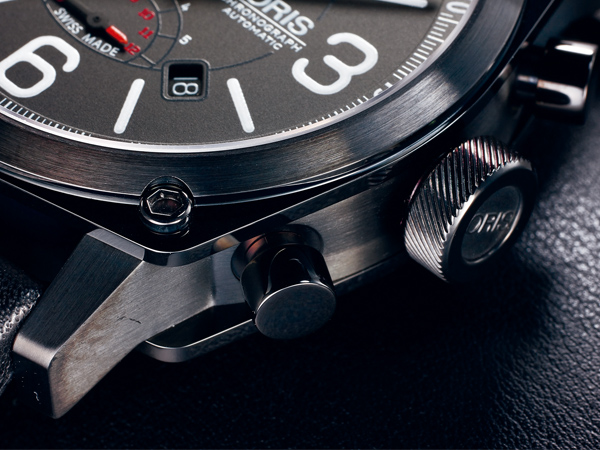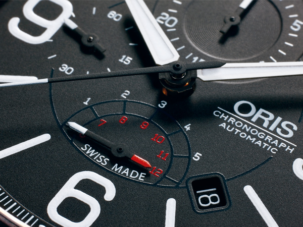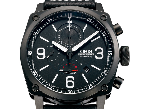 直徑 45mm黑色DLC不鏽鋼錶殼/時間指示、日期窗、計時碼錶功能/ORIS 674自動上鍊機芯/藍寶石水晶鏡面、透明底蓋/防水100米/參考價NTD 103,000(此為2013年參考價,實際價格以官方公告為準)