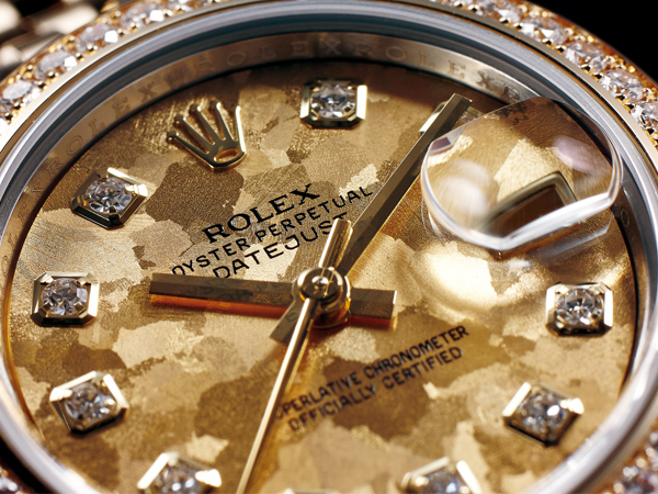 不過,作風穩健保守的勞力士,過去所推出的女錶款式,絕大部分都像是縮小版的男錶;但隨著女性消費者的購物實力大增,廠方也開始陸續推出多樣化的女錶設計。本次我們所介紹的Lady-Datejust Ref. 179383蠔式恆動女用腕錶,便是採用最新金晶面盤的錶款。本款面盤是以18K金合金製作,並在勞力士的自家鑄造廠內鑄造而成,透過特殊的冶煉技術,表面具有迷人的反光效果與特殊色彩,充分展示了金晶體的曼妙結構。另外,如同人類的指紋,每一個面盤的金晶都是獨一無二的樣式。
