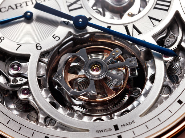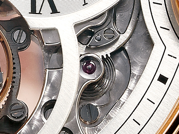 不只如此,機制在運作時會因為機件碰觸而發出清脆響聲,卡地亞刻意突顯如此設計,作為整點小時同步瞬跳時的提示音。趣味的設計,實際功能有限,但也反映出品牌賦予腕錶雅趣形象,讓無論外行內行,都能從一只腕錶中得到樂趣。