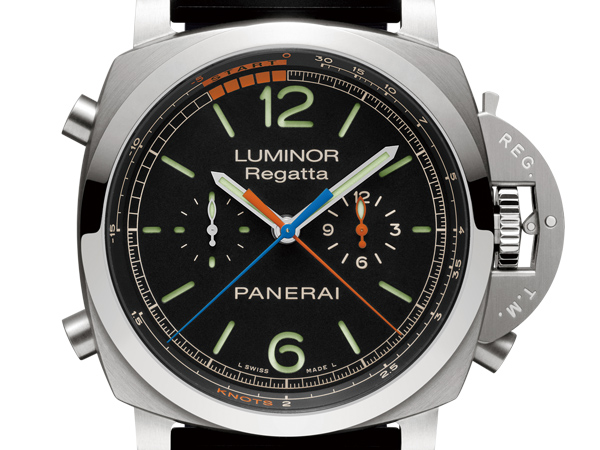 Luminor 1950 Regatta 3 Days Chrono Flyback Titanio 3日動力儲存飛返計時鈦金屬腕錶,是沛納海2013年推出最複雜的一款錶,採用自製的P9100/R自動上鍊計時機芯,並具備三日動力儲存,此外還配備帆船賽倒數計時功能,儘管帆船這種水上運動在亞洲不算普及,但頂級錶上的複雜功能其實沒有太強的地域性,只要需要倒數計時,就能使用倒數功能。