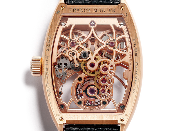 為此,FRANCK MULLER為迅雷陀飛輪裝置了4枚發條盒,透過串聯並聯的組合,提高能量輸出,加強穩定度與持久度,讓陀飛輪機制能夠擁有60小時的動力儲存實力。