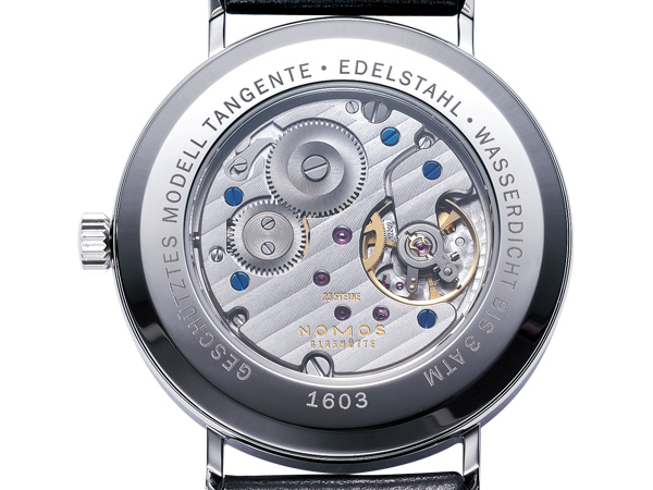 使用的自製Beta機芯更是NOMOS的驕傲,基底是老機芯Peseux7001,但製程、外觀及零組件卻是完整格拉蘇蒂風範。NOMOS雖是德國品牌,但這個字本身卻是希臘字,意思是「法則」。它有著非常德式包浩斯風格的外觀,但錶中所蘊藏的精神卻與包浩斯的「形式來自於功能」不盡相同,雖然錶殼造型的的確確參考了1930年代格拉蘇蒂當地的古董作品,然而設計師Susanne Günther的想法遠遠不止於此。