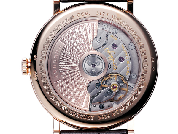 機芯則是這款錶令人拍案的另一珍寶,從2001年開始歷經5年研發才正式發表的自製機芯,有著絕美的薄型整體式設計自動上鍊結構,矽質零件、同樣以手工雕花機鐫刻的金質自動盤採陶瓷滾珠軸承支撐,發條盒內有類鑽碳鍍膜以減少摩擦,無卡度的Anachron專利材質寶璣式繞頭雙層游絲,寶璣特有型式的精密可調擺輪,寶璣慣有的高水準打磨,能結合最新科技與傳統技藝者,唯此君耳。