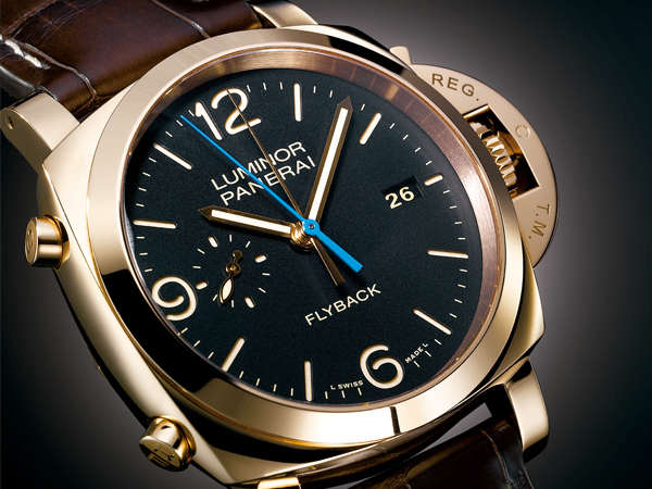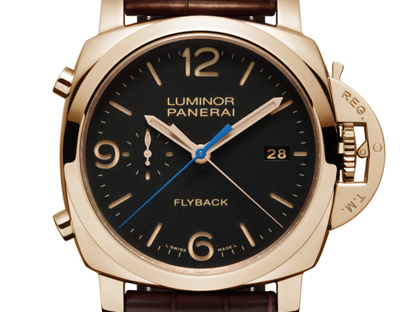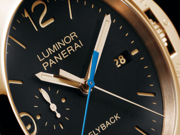 除此之外,P.9100機芯具備Flyback飛返計時功能,當配戴者按壓十點鐘位置的計時按把,開始計時功能之後,無須按壓停止、歸零、啟動等步驟,只要按壓八點鐘位置的歸零按把,便可迅速歸零並重新進行下一次的計時步驟。這是非常實用,同時不易造成計時結構損壞的設計。位於面盤九點鐘位置的小秒針,則保有沛納海慣用的秒針歸零結構,而可快調短時針的設計,在前往世界不同時區的國家,調整也十分簡便。