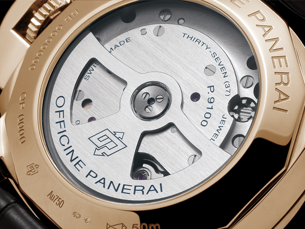 近幾年來,PANERAI沛納海在自製機芯的領域中,快速的累積研發與技術能量,將品牌推升至專業製錶廠的地位。2013年,沛納海發表首款自製的P.9100自動計時機芯,除了擁有與其他自製機芯相同的概念元素之外,特殊的同軸雙計時指針,更是沛納海挑戰另一個設計的開端。