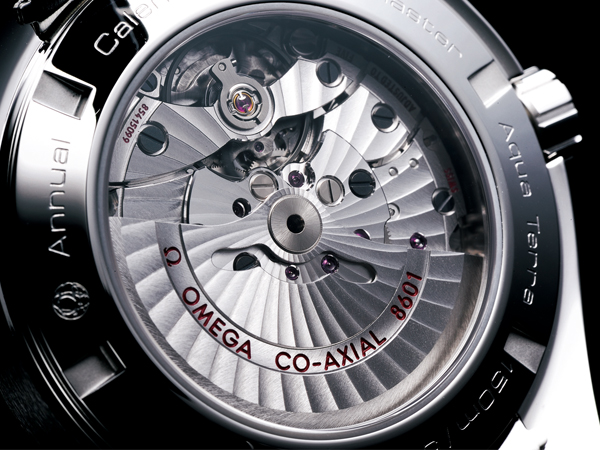 它採用的8601同軸擒縱機芯上,同軸擒縱裝置與無卡度矽質游絲擺輪相輔相成,擺輪旋轉速率透過鑲嵌於輪緣上的兩個金質精密螺絲控制,不但避免游絲與快慢針接觸產生的干擾,更解決校時曠日費時的問題。先進的年曆功能每年只要調一次日期,其餘月份皆會自動辨別大小月。