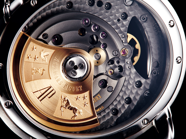 多種材質及珍珠圓點紋、日內瓦波紋等表面處理,更是為它的元素增色不少。緩慢移動的時分針在偏心面盤幫襯下讓人領受時間的永恆,中速前進的小秒針則有區隔領域的籓籬效果;快速擺動回旋的擺輪則展現了時間的珍貴,製作技術的進步讓愛彼這枚機芯帶領了Inverted Design的風潮,用更大的空間展現工藝技術的奧秘,以正攻法攫取錶迷的關愛。