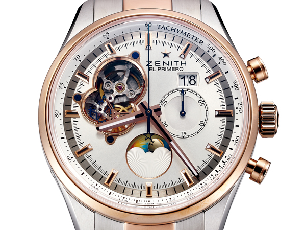 直徑45mm不鏽鋼與18K玫瑰金錶殼/時間指示、大日期窗、計時碼錶、月相與日夜顯示功能/El Primero 4047自動上鍊機芯,動力儲存50小時/藍寶石水晶鏡面、透明底蓋/參考價NTD 524,000(實際價格以官方公告為準)