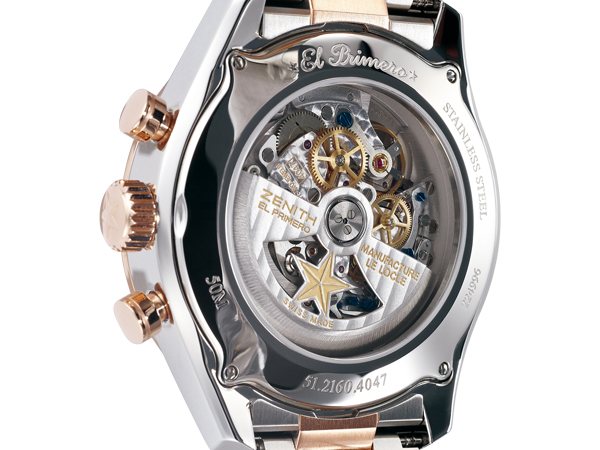 而El Primero機芯採用傳統的水平離合結構與導柱輪裝置,前者可讓愛錶人士欣賞計時結構的運作,而後者則具有精準與耐用的特性。雖然水平離合結構在啟動與停止時,秒針延遲或跳動的情況仍是無法避免,但是耐用性與維修便利性,仍佔有極大的優勢。在操作計時按把的過程當中,無須用力按壓即可啟動計時功能;在操作歸零按把時,只須輕輕按壓,指針就會快速歸零,操作觸感相當出色。