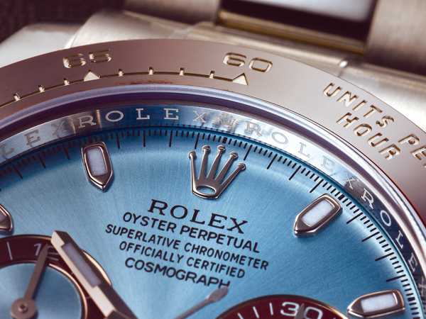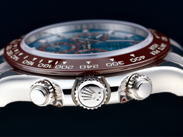 ROLEX勞力士在1963年推出首款Cosmograph Daytona,錶款編號是Ref.6239,2013年推出的Ref.116506則是慶祝錶款年滿半百的高要里程碑,延續2000年最後改款時發表的主要設計,採用勞力士鮮少使用的950鉑金製作錶殼及鍊帶,特殊的冰藍色面盤以及首度出現的咖啡色(原廠稱之栗啡色)錶圈;它不是近年來勞力士最花俏的款式,卻是最重量級的一款錶。不只是錶的地位最高,鉑金殼及鍊帶也讓它的份量充滿「存在感」。