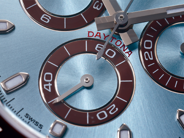 其實這款代表Daytona發表50週年的錶款一推出,應該讓所有勞力士錶迷傻眼,因為它用的是冰藍色的面盤配上咖啡色的副面盤刻度圈,而非其他錶款最常採用的綠色;但勞力士先前推出鉑金款Day-Date II就用了冰藍面盤,讓這份訝異稍微減低,也許未來鉑金款會一體適用。