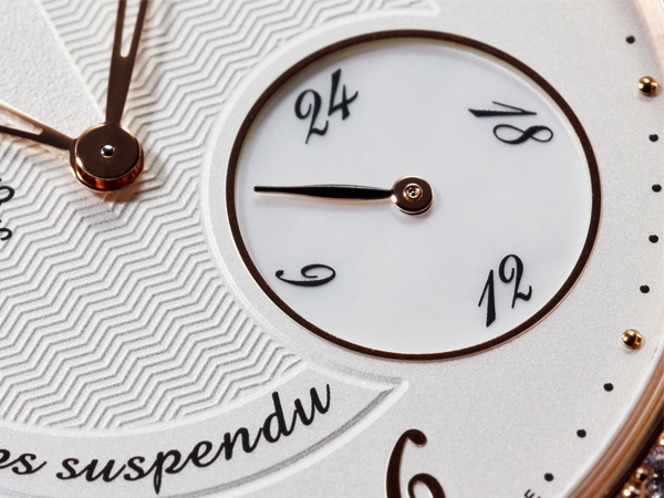 新一代時間暫停錶維持Arceau系列經典的上寬下窄不對稱錶耳設計,並且把逆跳日期改為更有趣的逆行小秒針,充份表現出法式不受任何規則羈絆的浪漫風情。它奧妙之處在於九點方向的按把,輕輕一按就會讓時分針跳進十二點的兩側;好比曲棍球賽裡裁判把球員叫去坐球監一樣;再按一次,時分針就跳回正常位置,這是非常獨特的時間切換顯示功能,背後的機構異常複雜。