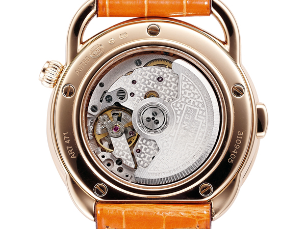 這枚H1912機芯由獨立製錶師Jean-Marc Wiederrecht協助開發,愛馬仕自製H1912機芯為基礎,加掛Agenhor 4121模組(Agenhor是Wiederrecht的工作室),它還取得了兩項專利。其實不妨將它視為變形的追針計時碼錶,機構更為特別。從透明底蓋就能見到這枚機芯。很難得有錶的背面會給人經過設計的整體美感,它無疑是其中的佼佼者。