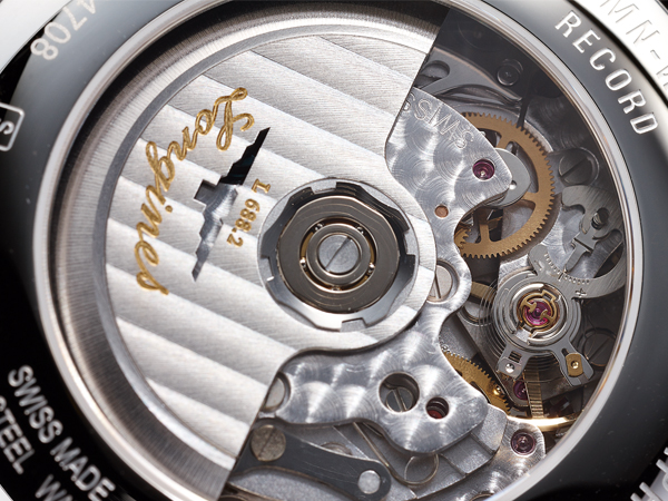 這枚錶使用的L688.2自動上鍊機芯也展現了LONGINES最大的誠意,它是由集團內的機芯廠ETA專為浪琴研發的新一代高級自動計時碼錶,採用ETA 7753的基本架構,但換上了導柱輪及垂直耦合結構,導柱輪特別以藍鋼處理,整枚機芯都以傳統工法修飾,佈滿珍珠圓點紋與日內瓦波紋,儲能也提高到54小時,實用與美觀兼具。