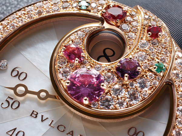 Berries無論是寶石大小、色澤都經過嚴格篩選,再搭配上寶格麗拿手的鑲嵌工藝,不管是從功能著眼或者整體設計看來,Berries甜莓果跳時分針逆跳腕錶,由內而外都承襲了GÉRALD GENTA對於複雜功能展現,同時也充分發揮寶格麗對珠寶鑲嵌的完美詮釋。