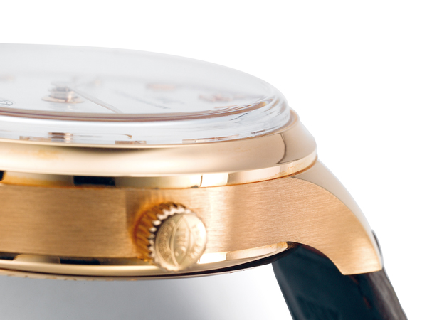葡萄牙三問錶以18K玫瑰金打造錶殼,拋光、拉絲交錯的表面處理細膩雋永,搭配透明底蓋以便欣賞機芯。在這款錶上,IWC同樣採量少質精的限量作法,只打造500只;另有鉑金款,限量生產數相同。
