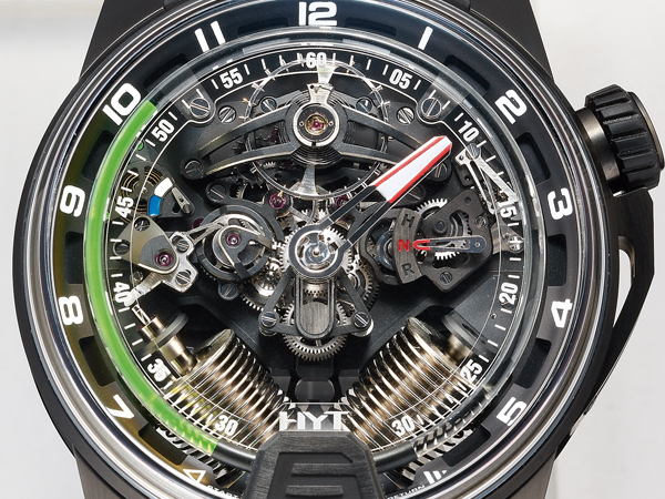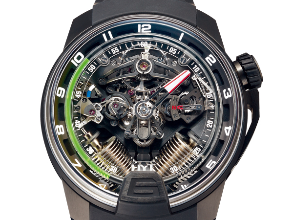 2012年HYT以獨創液態走時顯示,讓人留下深刻印象, 隔年又與APRP(Audemars Piguet Renaud et Papi)的Papi合作,發表全新錶款H2,在液態與機械結合同時,更加上錶冠功能指示器,溫度感測器以及獨特的跳分指針;眾多功能,讓這款錶更令人神往。