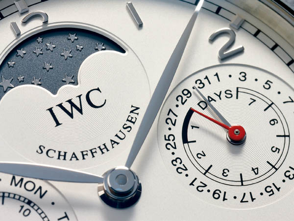 IWC的萬年曆錶在業內赫赫有名,它由設計師Kurt Klaus在1985年一手催生,有別於傳統萬年曆錶調整煩難,經常意外損壞的狀況,它用機械結構把四年一個週期的閏年循環裡,月份與日期的變動都預先程式化,也因此只靠一個錶冠就能調校所有曆象功能,不必再靠隱藏式校正鈕調校各項單一功能。