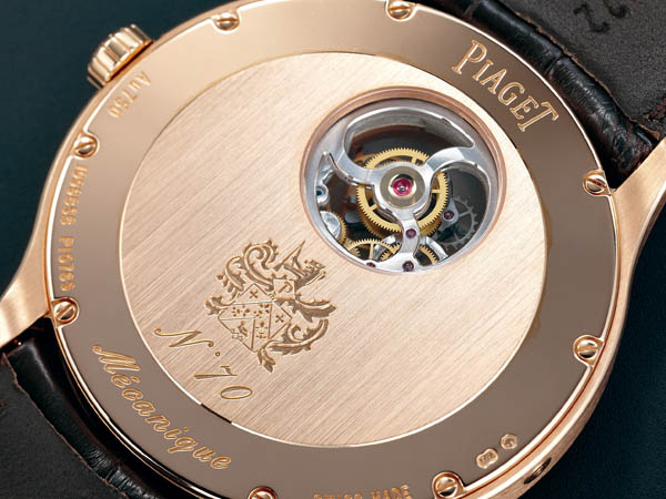 偏心式陀飛輪與傳統陀飛輪孰優孰劣眾說紛紜,相對來說,偏心式陀飛輪在整體配重上必須更加注意,仔細觀察就會發現它的籠架設計都會相對向質心緊縮,與傳統式陀飛輪相比,無疑各有各的美感;伯爵以傳統快慢針配合光擺,做為偏心式陀飛輪的基礎,籠架上還外加了代表品牌的P字樣,看得出濃厚的家族風味。