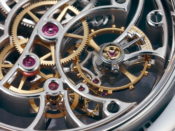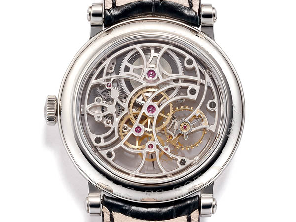 從欣賞鏤雕錶的角度來看,1740滿足最高的想像,機板及橋板只剩下絕對必要的骨架,通透程度令人咋舌。嚴格來說,說實話,只有電腦輔助設計的機械錶有能力鏤到如此徹底,因為骨架極細,又必須維持強度,因此它的厚度遠遠超越傳統。錶上未施任何金雕、以素顏示人則是另一項與傳統作法的差異。