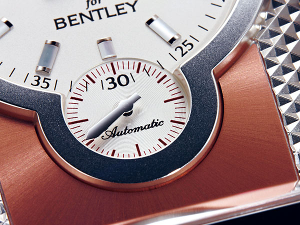 BREITLING百年靈在與賓利(Bentley)合作推出雙品牌款式後似乎欲罷不能,冠有Bentley名稱的系列錶款與日俱增,這系列錶款的確提供相當獨特的造型、Bentley全系列錶殼都有著對稱中夾著不對稱的特殊設計風格,所具備的功能也與一般百年靈不盡相同;跳時錶就是其中之一。