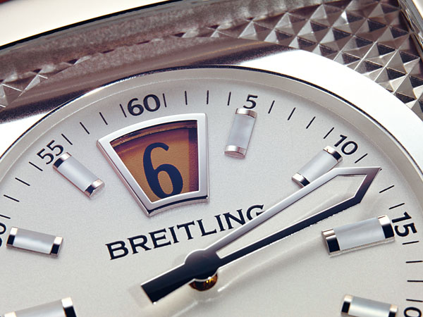 不鏽鋼錶殼打磨非常細緻,搭配面盤上的大面積巴黎釘紋,的確有著賓利的英國紳士氣息,或許來自英倫三島的品牌都會在不自覺間受到大不列顛帝國君主立憲制度的薰陶,它的裝飾元素與Alfred Dunhill的部份錶款有異曲同工之妙,相信雅好英式保守風情的人都能感受到;但百年靈對Flying B的錶殼線條曾有過官方說法,稱創作靈感來自於賓利的部份敞蓬車款,是否能從錶上看出這點,相信讀者自有定見。然而筆者所見到這款Flying B似乎有面盤左右不對稱的問題,不知是個案還皆為如此。
