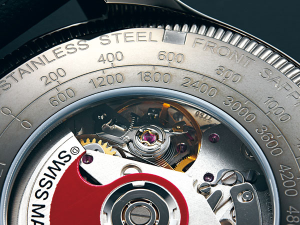 回到外型上,多片式的錶殼,以古典的線條搭配槍鋼色的PVD塗層,企圖呼應錶款所要致意的Bell X1超音速飛機的銅色機身,ORIS也刻意將X與1字樣分別安置於兩點與四點鐘位置的計時按把上,更是直接而明確的點出錶款主題。