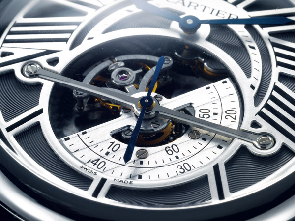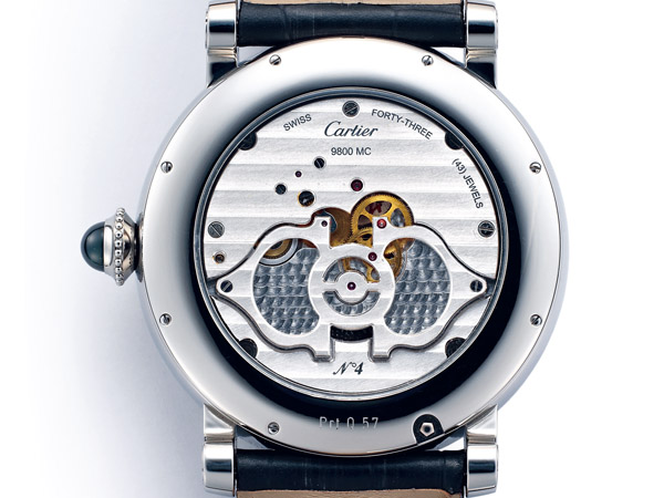 卡地亞在2010年發表Astrorégulateur,完全自行開發的9800MC機芯令人驚豔,它以獨特的思考抗拒地心引力,不像其他品牌採用200年前發明的陀飛輪裝置,採用了特殊獨有的重錘,讓擒縱結構盡量保持與地面呈鉛直線,抵消掉擒縱結構所受到來自各個方向的重力;除開重錘之外,極微小的差速齒輪也是機構能夠順利運作的基礎,這些精密的微型機械結構,讓這款錶標出高到令人咋舌的價格。