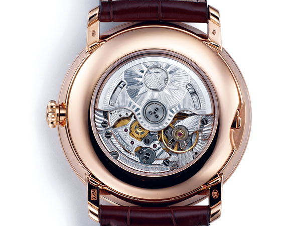 時間等式這項複雜曆象從此在手錶上變得簡明易懂,不需要說明書,也能看出當天真實太陽時與平均太陽時的差距。當時它屬於的Le Brassus,但此次鑑賞的錶款已經歸入Villeret系列,機芯的金雕圖案也不盡相同。