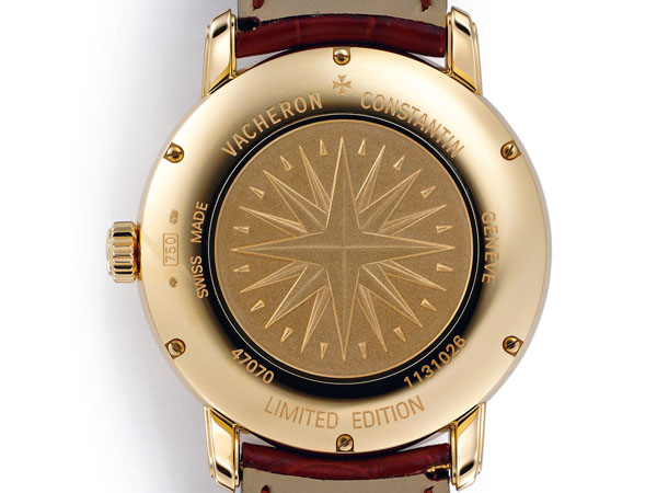 江詩丹頓這款錶用鐫刻的數字取代透明碟盤,因為機芯構造特殊,它的面盤分成兩層,兩層面盤上的圖案是接續的,看來也有另一分情趣,琺瑯作工當然夠精彩,但這只錶的機芯更加引人入勝。採用玫瑰金錶殼,限量生產60只。