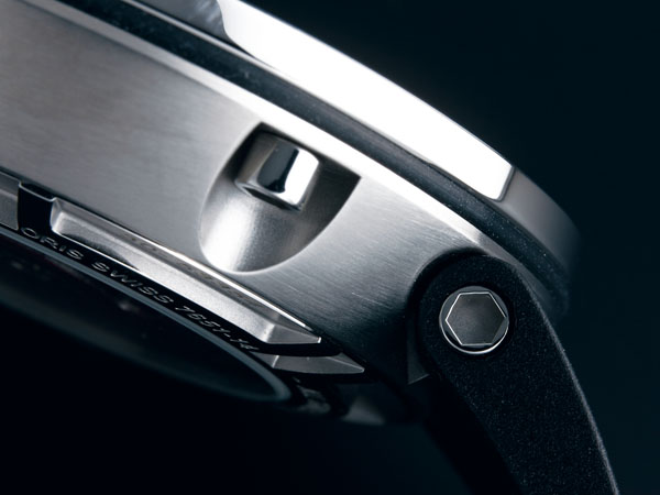 與F1Team Blue Circle相同的是,ORIS在黑色陶瓷錶圈與不鏽鋼錶殼之間加入一層黑色的矽質抗震薄層,雖還未見實際測試過後的心得,但這三明治般的設計,卻也相當好看。