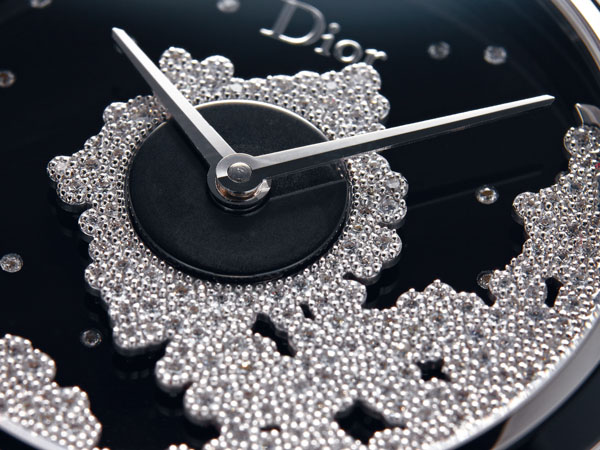 Grand Bal的特色就是在自動盤上展現高級訂製服技法,除了蕾絲、刺繡,與皺折,本款為水玉點,將每顆璀璨的鑽石當成經典圓點,佈滿不規則形狀的自動盤上,轉動起來美感特殊。