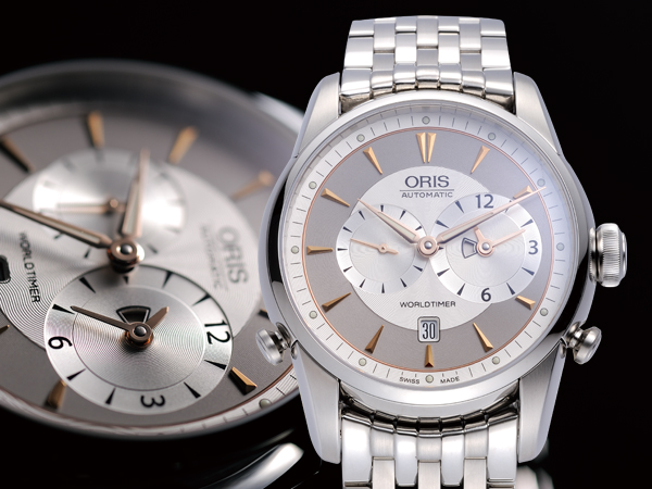 ORIS的這款二地時間算是GMT入門款當中頗為有趣的一款,雖然它搭載的機芯是用ETA 2836-2為基礎的,不過這種面盤配置在同級產品中卻不常見。ORIS自己的BC4 Flighter Timer曾經使用過同樣的面盤配置(當然搭的是同一枚機芯),它是以獨立的時分盤顯示第二地時間,而且是採用12小時制搭配日夜顯示,其中日夜顯示是一個小小的扇形視窗貼在時分盤的軸心,以日夜顯示來說還滿別緻的。